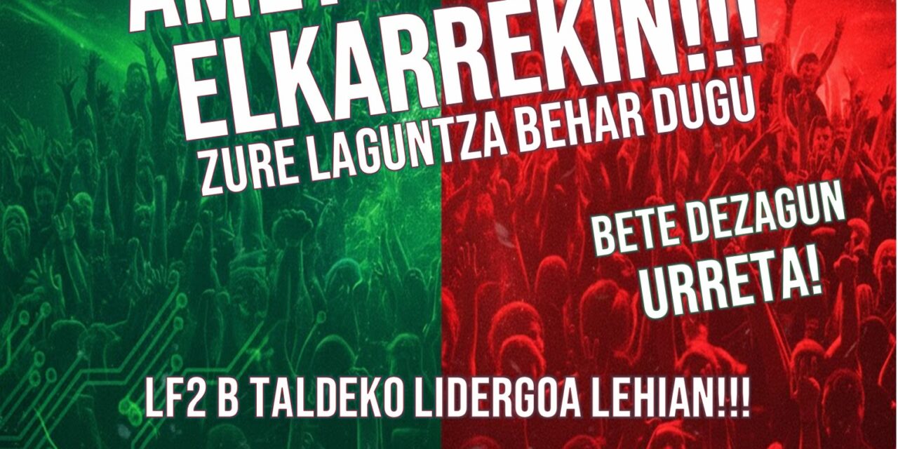 Este sábado, en Urreta, a las 18.30, partido por el liderato del Grupo B de LF2!!! Necesitamos vuestro apoyo para ayudar al equipo en el partido. Contamos con todos vosotros!